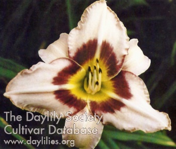 | Description : ivory cream with indigo violet eye above chartreuse throat | |