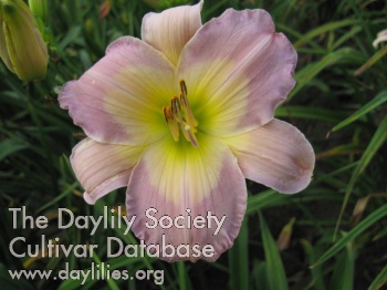 | Description : lavender mauve blend with lighter watermark above a bright green throat | |