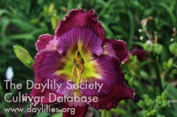 | Description : Grape purple with a large, patterned bluish purple eye and a starburst green throat. | |