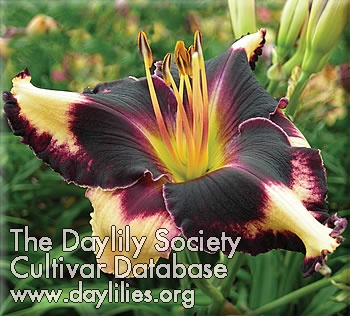 Description : dark almost black eye extending across nearly the entire flower over a light peach