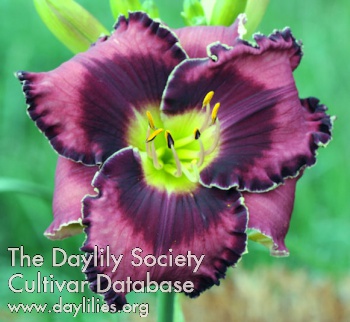 | Description : Variable rose to fuchsia with light to dark purple eye, green throat, white midribs extend from green throat to one third length of petal. | |