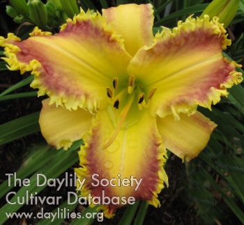 | Description : Dark violet with toothy white, light yellow edge and green throat. | |