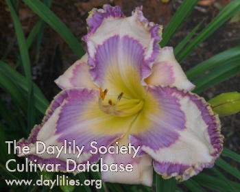 | Description : Cream with purple eye and purple edge. | |