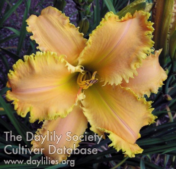 | Description : Gold with pink blush on petals, polychrome, and brighter gold edge with teeth, hooks, knobs, and tendrils. | |