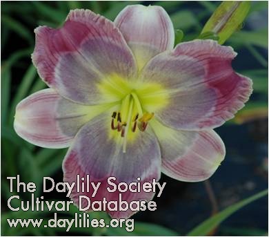 | Description : Purple with lighter edge and purple blue eye, very green throat. | |
